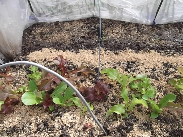 ♪野菜…3/17日に定植したリーフレタスは大きくなりました(前列)、3/31日播種の時無し大根は発芽しました(トンネル奥)…4/12日播種の法連草は発芽までは灌水に注意します…葉ネギは収穫可能です… #野菜