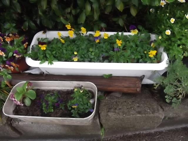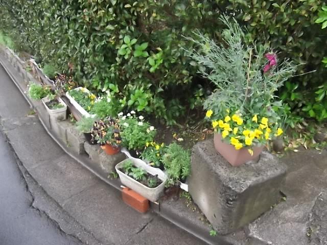 ♪花…道路沿いの斜面の三角地面に雑草がたくさん生えるので肥料袋を再利用して雑草防止のマルチシートとして利用しました…ノースポール(クリサンセマム)、金盞花、ビオラ、フェリシア、金魚草、カスミソウ、カモミールの鉢を並べました… #花