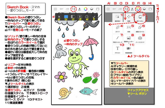 ●スマホの描画(ペイント)アプリのSketchBook(スケッチブック)を利用しました。 ・塗りつぶし_モードの操作をまとめました。 ・枠内のタップで塗り潰しできます。 …#SketchBook #スマホ #アプリ #描画 pic.twitter.com/asygBku0ol